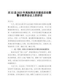 在XX县2025年高标准农田建设启动暨警示教育会议上的讲话
