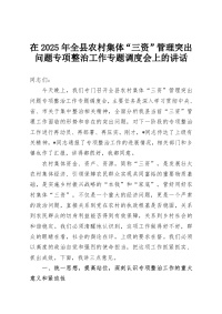 在2025年全县农村集体“三资”管理突出问题专项整治工作专题调度会上的讲话