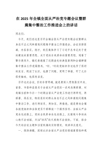 在2025年全镇全面从严治党专题会议暨群腐集中整治工作推进会上的讲话