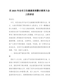 在2025年全市卫生健康系统警示教育大会上的讲话