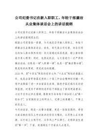 公司纪委书记在新入职职工、年轻干部廉洁从业集体谈话会上的讲话提纲