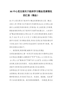XX中心党支部关于组织学习精品党课情况的汇报(精品)