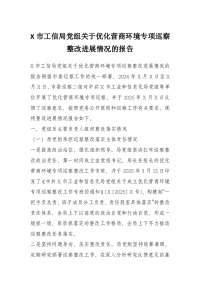 X市工信局党组关于优化营商环境专项巡察整改进展情况的报告