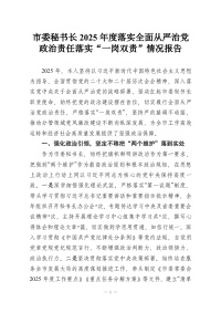 市委秘书长2025年度落实全面从严治党政治责任落实“一岗双责”情况报告
