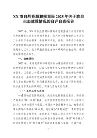 XX市自然资源和规划局2025年关于政治生态建设情况的自评自查报告