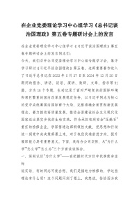 在企业党委理论学习中心组学习《总书记谈治国理政》第五卷专题研讨会上的发言