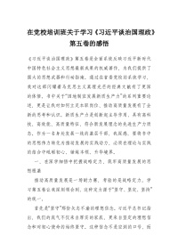 在党校培训班关于学习《***谈治国理政》第五卷的感悟