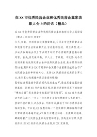 在XX市优秀民营企业和优秀民营企业家表彰大会上的讲话(精品)