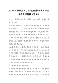 在XX工业园区《总书记谈治国理政》第五卷收党课讲稿(精品)