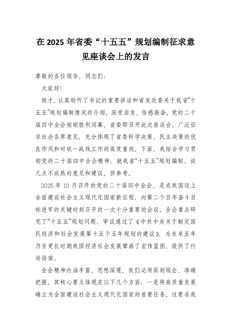 在2025年省委“十五五”规划编制征求意见座谈会上的发言