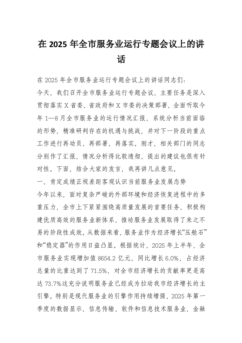 首页讲课讲稿在2025年全市服务业运行专题会议上的讲话
