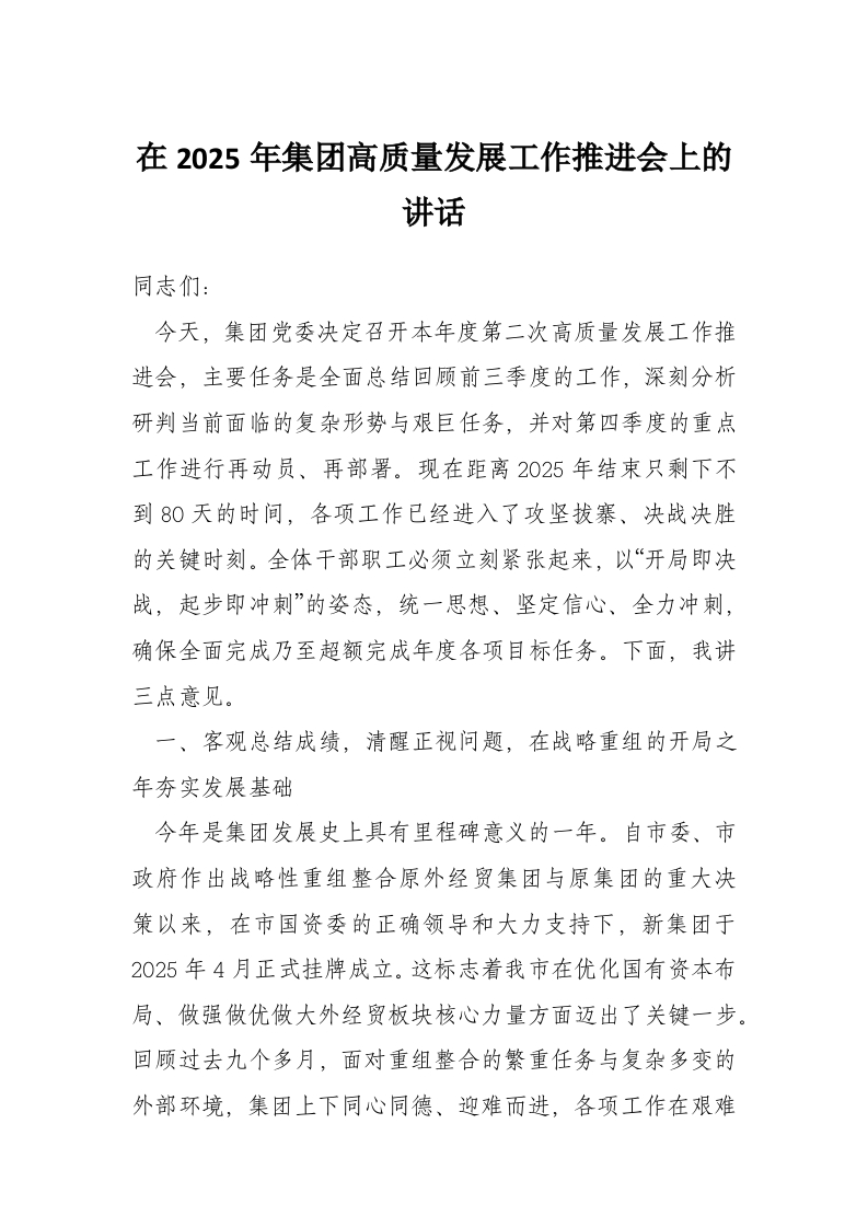 首页讲课讲稿在2025年集团高质量发展工作推进会上的讲话