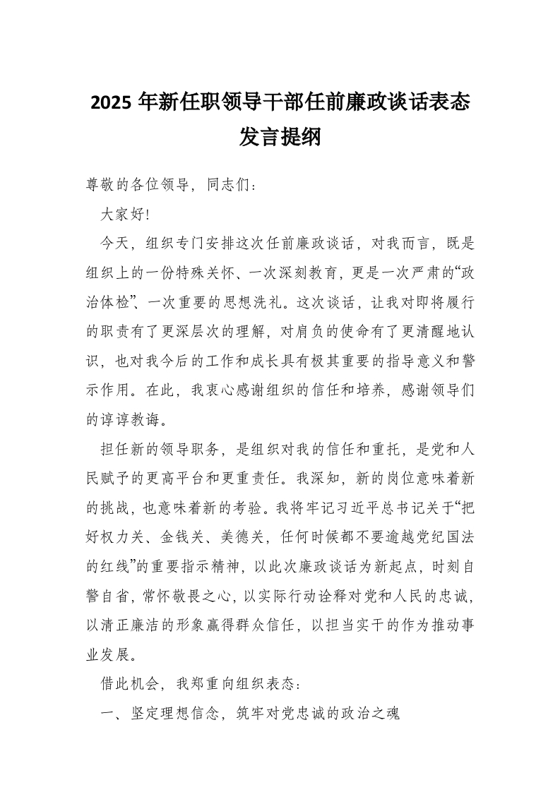 2025年新任职领导干部任前廉政谈话表态发言提纲