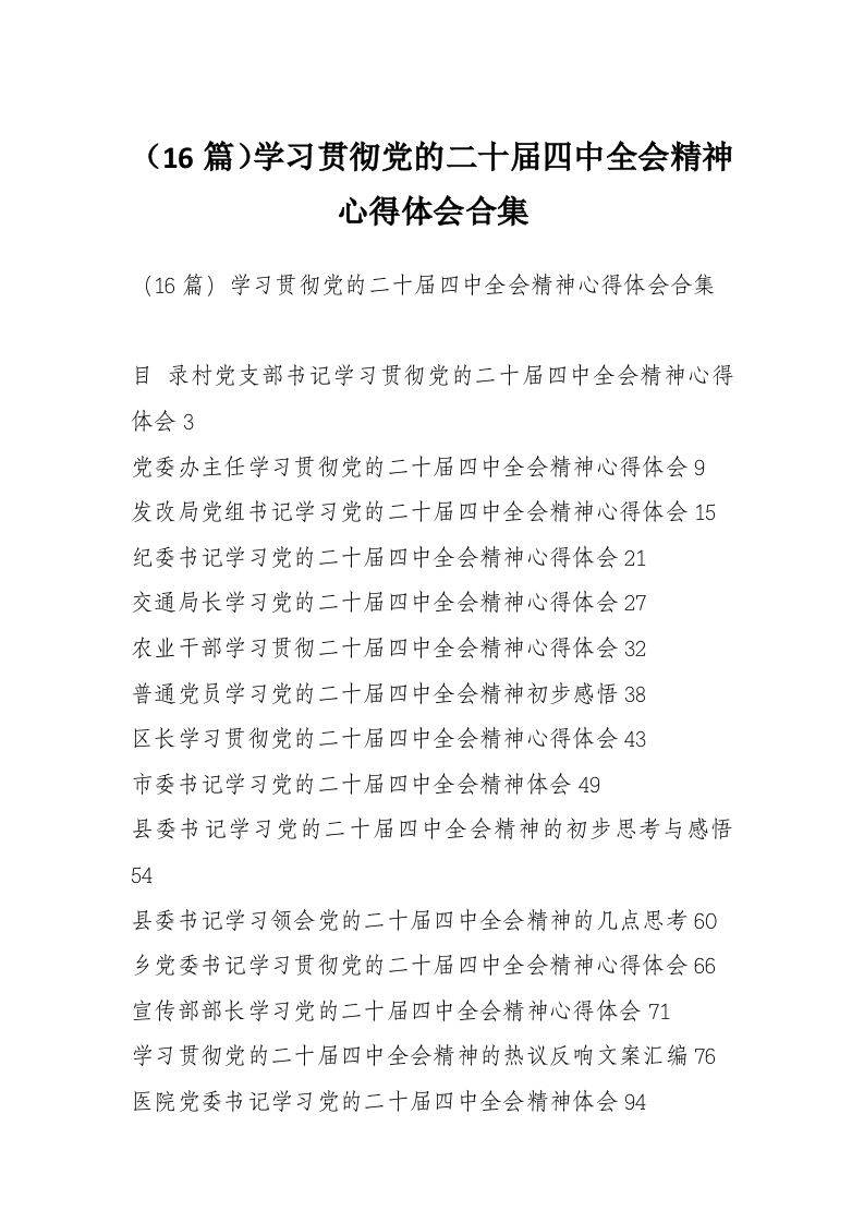 首页工作文档(16篇)学习贯彻党的二十届四中***精神心得体会合集