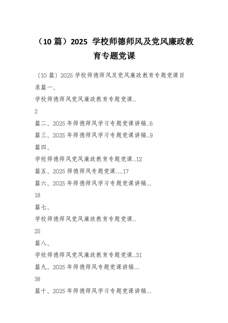 (10篇)2025 学校师德师风及党风廉政教育专题党课