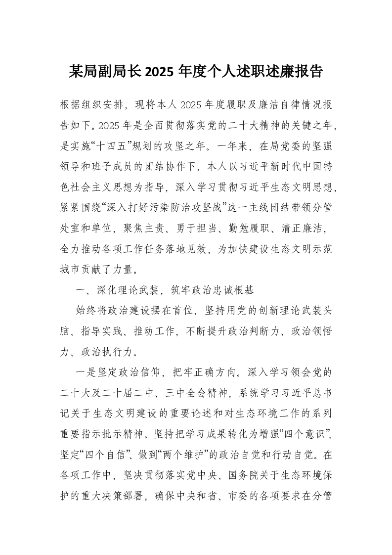 首页学习提升某局副局长2025年度个人述职述廉报告