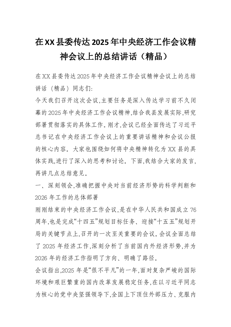 在XX县委传达2025年中央经济工作会议精神会议上的总结讲话(精品)