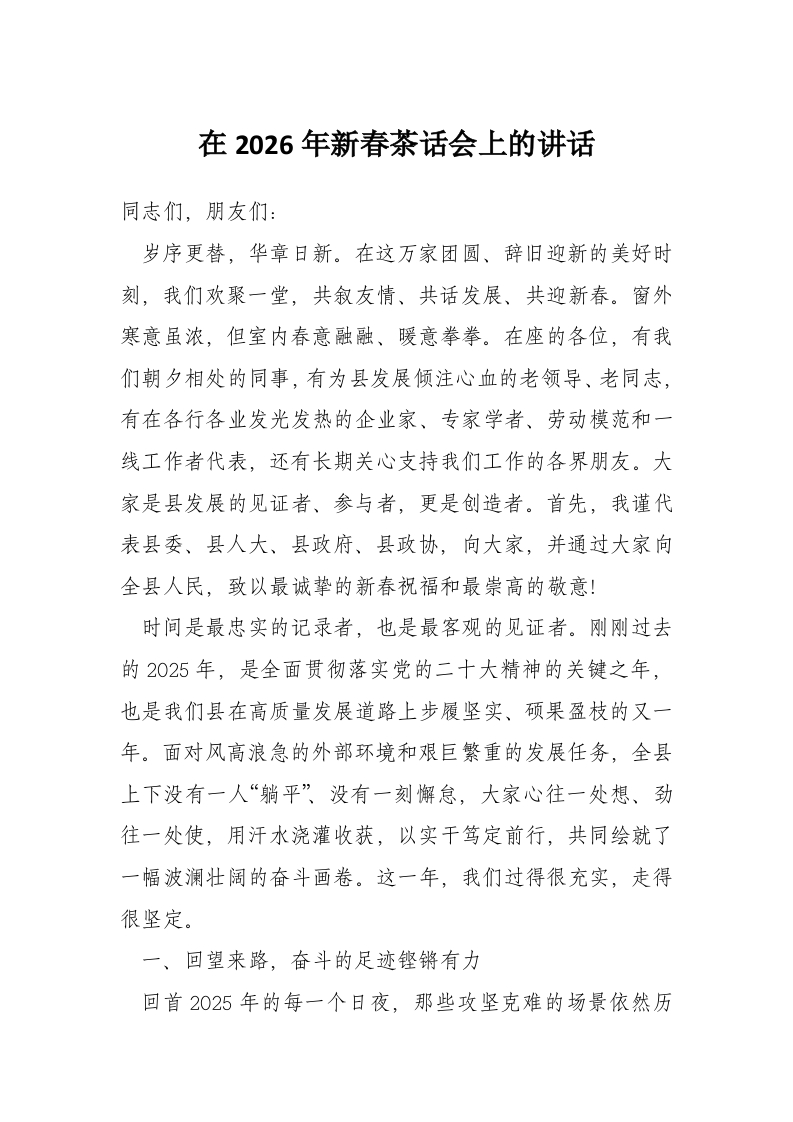 在2026年新春茶话会上的讲话