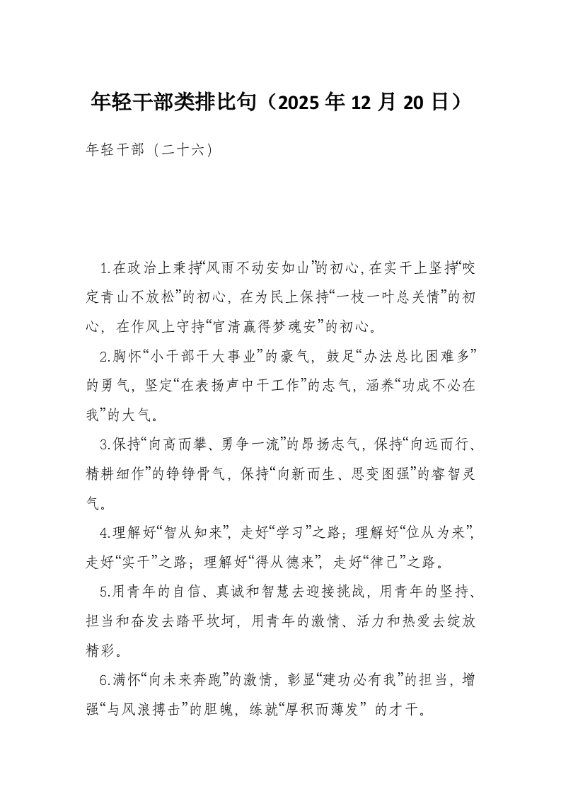 首页每日金句年轻干部类排比句(2025年12月20日)