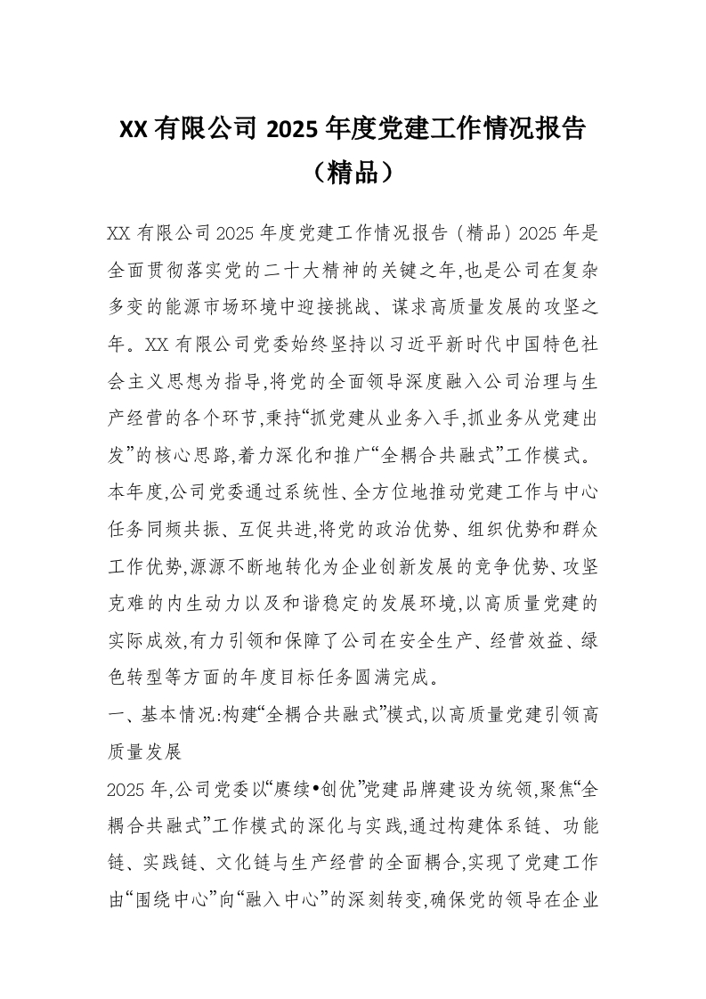 首页写作素材XX有限公司2025年度党建工作情况报告(精品)