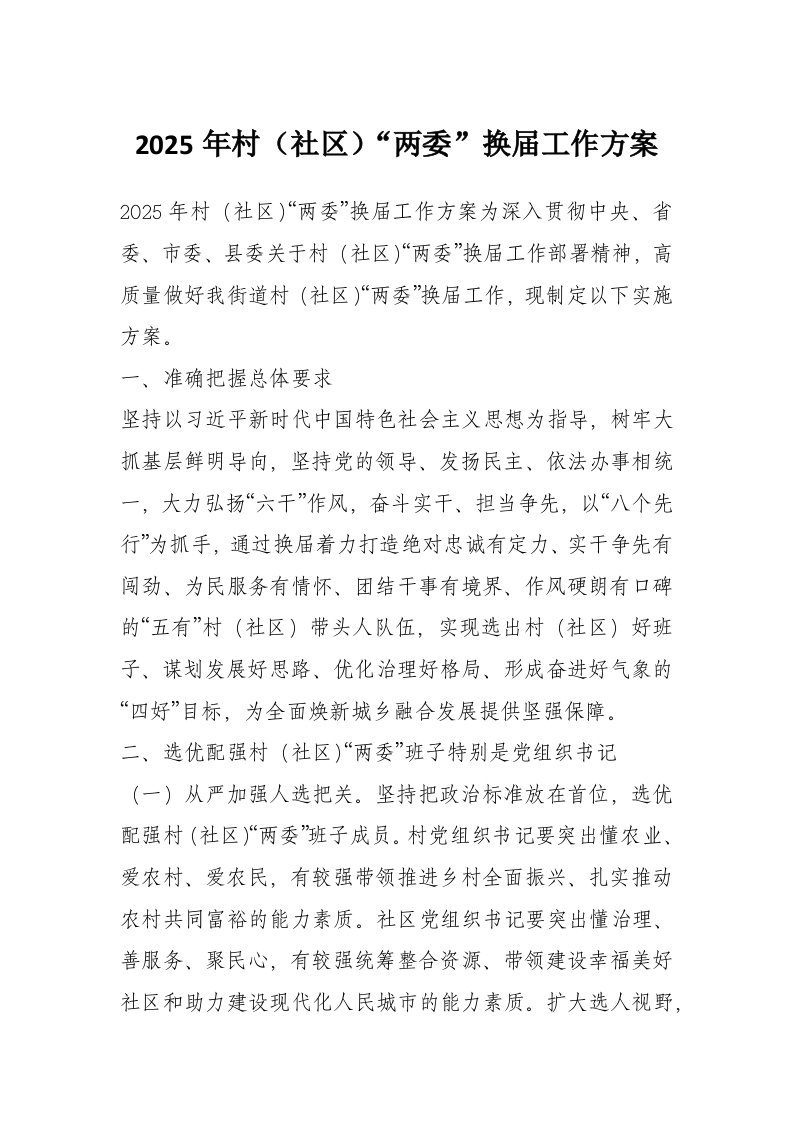 首页写作素材2025年村(社区)“两委”换届工作方案
