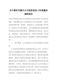 关于新时代提升公立医院党务工作质量的